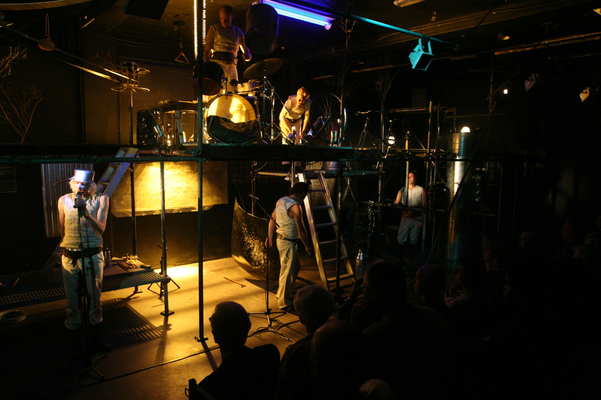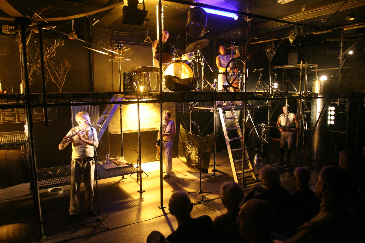 In the years 2003 and 2005, we composed music for two plays under the name 'De Muzinisten'. We were also on stage as musician-actors, but with very limited roles such as moving around and reciting texts.
