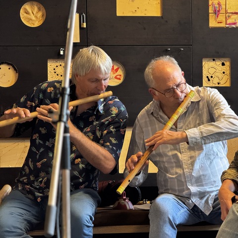 Video of the first evening Thursday 24 July 2025: Carte de Visite Sonore. Everyone introduces themselves musically, followed by duos, trios etc.